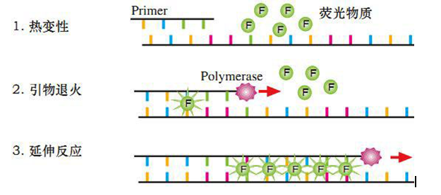SYBR Green I染料法:該染料是專一和雙鏈DNA分子結合發(fā)光的熒光染料,每擴增一次,染料結合一次,檢測信號增加一倍;