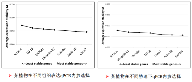 許多科研人員及公司,隨便選擇一種內參,根本不考慮內參的穩(wěn)定與否,就進行qPCR分析研究,往往得出與實際相反的結論。本公司針對每個模式生物,準備了至少5種候選內參基因引物,針對每一個qPCR實驗,采用gNorm或Normfinder軟件篩選最為穩(wěn)定的內參引物,從而實現qPCR數據的可靠性和準確性。