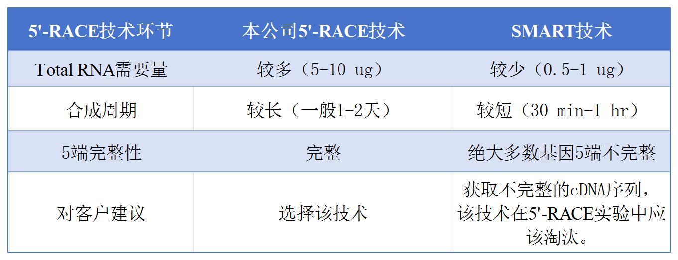 表:本公司5’-RACE和SMART技術(shù)比較