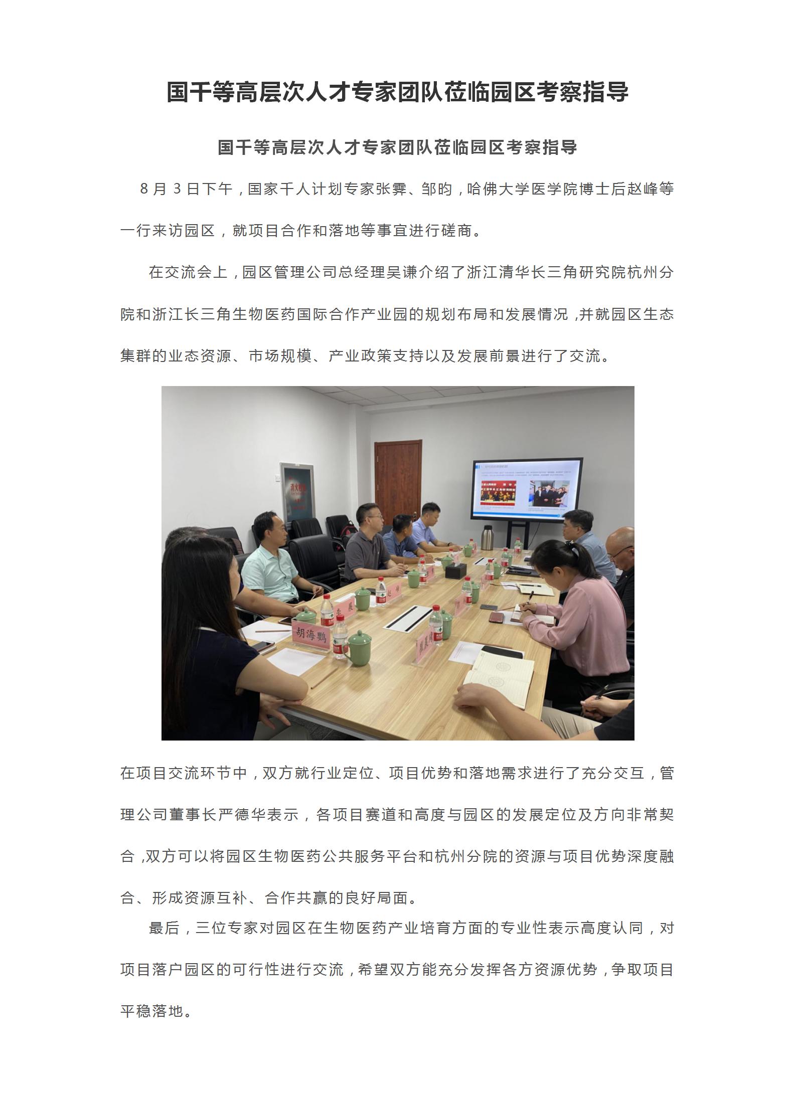 國千等高層次人才專家團隊蒞臨園區(qū)考察指導(dǎo)