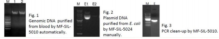 | 血液 | 200ul 全血 | MF-SIL-5010 | 自動(dòng) | >5ug 基因組DNA/50ul Beads,F(xiàn)ig.1 |