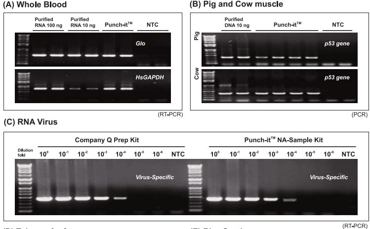 Punch-it對動植物組織,全血,微生物均有良好的分離效果,得到的總核酸(DNA/RNA)產(chǎn)物,可以得到很好用于后續(xù)的PCR實驗。