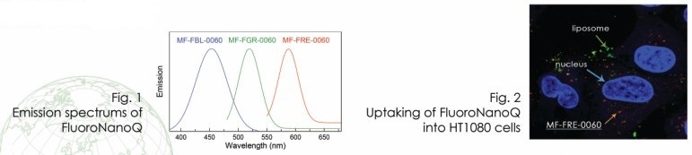圖1.FluoroNanoQ發(fā)射波譜 圖2.FluoroNanoQ被HT1080細胞吸收