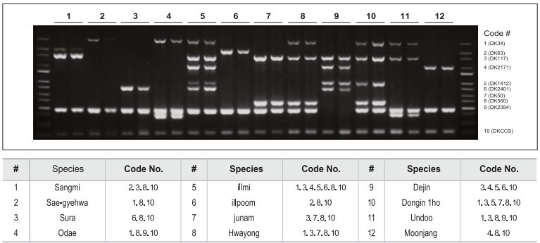 圖2. 對(duì)HelixAmp擴(kuò)增產(chǎn)物多重PCR,區(qū)別特定等位基因的差別快速鑒定水稻變異品種。