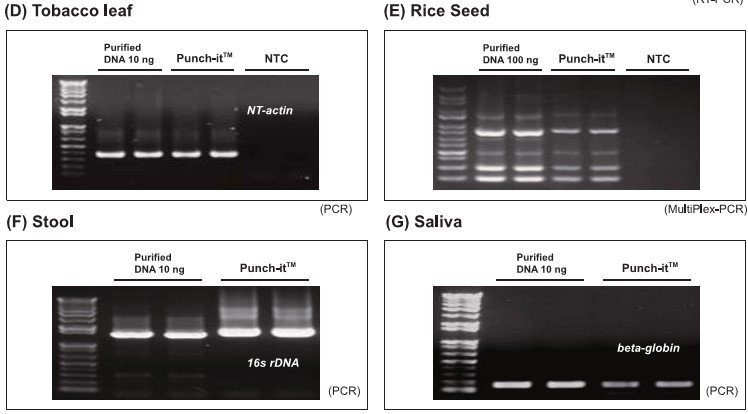 Punch-it對動植物組織,全血,微生物均有良好的分離效果,得到的總核酸(DNA/RNA)產(chǎn)物,可以得到很好用于后續(xù)的PCR實驗。