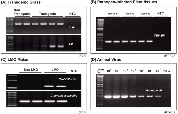 圖3. Punch-it分離不同樣本總核酸效果。Punch-it分離核酸結(jié)合在膜上,實驗中直接使用膜作為PCR或RT-PCR模板, NTC:陰性對照。