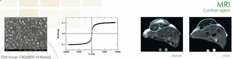 圖3. 掃描電鏡掃描FluoroNanoQ結果 圖4. FluoroNanoQ用于追蹤MRI顯影劑